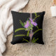 O trabalho de arte floral de MaeFlowers neste Travesseiro decorativo foi feito a partir de uma fotografia original da erva Rosemary. A foto de close-up mostra a planta acordando do inverno, florescendo com pequenas flores lavandas e novo crescimento verde. A fotografia de alto contraste e os efeitos de cor plana criam um fundo quase negro atrás do arbusto, dando à design uma aparência moderna.