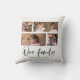 Travesseiro com as palavras "Nossa Família" em um script elegante com 4 fotos dispostas lado a lado na frente e no verso, totalizando 8 fotos que você pode substituir por suas próprias fotos em um fundo branco. Você também pode adicionar o nome da sua família e o ano de fundação. Perfeito para decoração de casa, recém-casados, lembranças da família, etc.