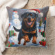 Almofada Rottweiler correndo em neve com chapéu de Natal