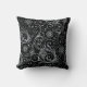 Este travesseiro elegante apresenta uma bonito espiral prateada e um design floral colocados sobre um fundo preto dramático. Muito distinto e atraente, e com um talento artístico novo. Ambos os lados do travesseiro têm a mesma imagem.