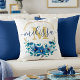 Almofada Rua azul e dourada floral personalizada