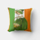 Uma adorável Rua de colheita. A almofada do dia de Patrick, com uma jovem irlandesa vestida de vestido tradicional irlandês, vestindo veludo verde, com uma capota, carregando um cabaz de flores mais vincadas. Ela está em frente à bandeira irlandesa. Este travesseiro irlandês faria um excelente adicional para a sua Rua. Festividades do Dia de Patrick este ano, ou apenas fazer um adorável artigo decorador de vintagem para a sua casa.