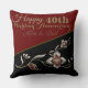 Um belo travesseiro de 40 anos de casamento para o aniversário rubi da mãe e do Pai - Este travesseiro ostenta um cluster floral sobre fundo negro e desejos de aniversário em letras douradas sobre fundo vermelho rubi. O texto neste travesseiro é totalmente personalizável e permitirá que você edite conforme desejado.