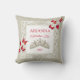 Fluttering butterflies pillow is versatile for bright red or ruby red theme colors. Butterflies and gemstone tiara can easily be resized and repositioned on throw pillow. Say congratulations with a red princess design. Decorative, leafy border beautifully surrounds your message.