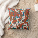 Featured are small, shapes in an overall contemporary print pattern in shades of rust red on an off-white background with turquoise blue elements. The overall design is suggestive of a modern art print in splashes of paint and creates a sophisticated, polished, elegant look, as well as comfortable, reflective vibe for living area, bedroom, workspace, terrace, or patio decor, offering a feeling of warmth and tranquility. There is much decorating potential in this accent piece, which fits into numerous styles (innovative to traditional), from retro/vintage to farmhouse to modern ranch style to rustic hacienda to urban loft and high rise.