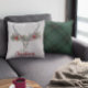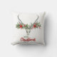 Na moda e festivo, este travesseiro é a maneira perfeita de adicionar um pouco de talento para a sua decoração. A design apresenta um crânio de renas com terra vermelha e verde, juntamente com o texto "Feliz Natal", que pode ser alterado. A parte traseira do travesseiro apresenta um padrão verde de xadrez do flanela. Feliz feriado!