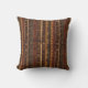 Warm geometric stripe pattern throw pillow featuring tribal-inspired diamonds, zigzags, and textured vertical bands in earthy brown, terracotta, tan, beige, and charcoal tones. A cozy boho design ideal for southwestern décor lovers, rustic style fans, and anyone drawn to earthy, handcrafted aesthetics.