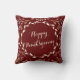Uma coroa esboçada pela mão, por Cindy Bendel, rodeia o texto Feliz Natal. Folhagem botânica de folhas e galhos que rodeiam a coroa. A cor de fundo é um vinho tinto profundo. O outro lado diz Feliz Ação de Graças, você pode personalizar qualquer um dos lados com seu próprio texto. Estes travesseiros de sotaque de decor doméstico são excelente para um tema rústico. © Cindy Bendel Creative Design LLC Todos os direitos reservados