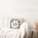 Guarda-casamentos personalizados. Este travesseiro elegante, rústico, apresenta um fundo de textura branca e cinza com uma bela folhagem de aquarela e uma corda de algodão que moldam o clássico monograma verde. Os primeiros nomes dos casais são escritos sobre o monograma inicial num belo roteiro de caligrafia, com a data do casamento abaixo. O design é o mesmo na frente e atrás. Faz um presente excelente para os recém-casados. Excelente para o seu quarto, cadeira favorita, uma adição decorativa formal à sua sala de estar, ou apenas para uma decoração divertida na sua sala de estar. As cores de todos os campos de texto podem ser alteradas conforme desejar.