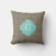 Almofada Rústico Burlap Olha, Monograma Turquesa