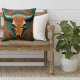 Almofada Rústico vaqueiro Teal Orange Southwestern Bull Crâ