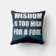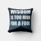 A tipografia branca-escura da citação "Sabedoria é demasiado alta para um tolo" sobre um céu noturno estrelado e uma silhueta de montanha. Travesseiro decorativo moderno e minimalista para salas de estar, estudos, dormitórios e leitura de anzóis. decoração doméstica inspiradora, design inspirada no provérbio, paleta marinho/preta, texto de alto contraste, presente de excelente para formandos, professores e pensadores.
