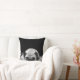 Fotografia branca e preta de um pãozinho adorável com olhos castanhos comoventes.