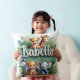 Travesseiro decorativo, de cor branca, com animais da selva e verde-peludos, com o nome de Isabella em letra na moda. Peça de sotaque perfeita para berçários, salas de jogos ou qualquer espaço com tema safari. Tecido suave e durável com cores vibrantes. Pode criar com qualquer nome - apenas me contate!