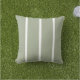 Stylish outdoor pillow in sage green with three thin white stripes.