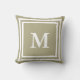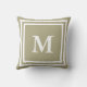 Você pode personalizar o grande monograma branco (inicial) que está no centro deste travesseiro decorativo verde sábio (código hexadecimal: B2AC88).
