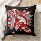 O travesseiro decorativo de vôlei desta garota divertida apresenta uma "explosão" de variados tamanhos de volichões vermelhos e brancos e formas vermelhas, cinzas e estrelas brancas sobre um fundo preto personalizável - os painéis vermelhos dos volleybolas são misturados com um padrão caleidoscópico floral - personalizam com o nome do atleta e o número de camisola na frente e atrás - katz_d_zynes