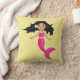 Cartoon de arte rosa de sereia de uma linda sereia feminina com cabelo preto e uma cauda rosa. Este travesseiro de conto de fadas bonitinho seria adequado para uma menina ou um acessório de quarto de menina.