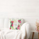 Travesseiro decorativo de escritura inspiracional retrata um belo design de aquarela floral com flores e folhas de trevo vermelho, rosa e verde. Apresenta a Bíblia Verse Psalm 37:4, "Delicie-se no Senhor e ele lhe dará os desejos do seu coração."