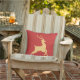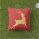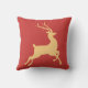 Rena dourada do Natal que salta o travesseiro exterior com uma rena vermelha do nariz que funciona alegre.