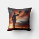 Uma silhueta de um soldado saudando uma bandeira americana com um dramático pôr do sol no fundo.