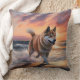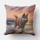 Almofada Sandy Paws Akita Dog em Beach Sunset