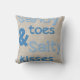 O travesseiro decorativo salgado dos beijos dos dedos do pé de Sandy é perfeito para o amante da praia! O texto azul adiciona um olhar e uma sensação beachy!