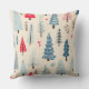 A cozy Scandinavian forest pattern throw pillow featuring hand-drawn trees in soft red, blue, and beige tones. This charming winter woodland design blends autumn warmth and Christmas cheer, perfect for seasonal projects and festive themes. Ideal for those who love modern rustic, minimalist, and cozy holiday styles.