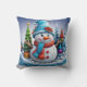 Fröhlicher Schneemann im Winterwunderland - Ein bezauberndes Weihnachtsmotiv zeigt einen fröhlich lächelnden Schneemann mit einer blauen Mütze und buntem Schal, umgeben von liebevoll geschmückten Tannenbäumen, Geschenken und verschneiten Hügeln. Die leuchtenden Farben, verspielten Details und die warme, festliche Atmosphäre machen dieses Bild perfekt für die Weihnachtszeit. Ideal für Grußkarten, Poster, Tassen, Kissen oder winterliche Dekoartikel – ein echtes Highlight für alle, die den Zauber von Weihnachten lieben.