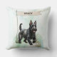 Add cozy charm to your home with this Scottish Terrier throw pillow featuring a watercolor design and customizable name flag. Ideal for breed lovers.
