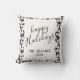 Feriados felizes do Rococo Negro e Branco Manda travesseiro de Natal. Padrão clássico de rococo preto e branco. Adicione seu texto e faça uma trendy e um travesseiro chic de Natal.