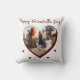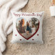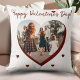 Travesseiro de Script de Foto da Família Cardíaca do Namorados Vermelho Burgundy. O fundo tem corações vermelhos sobre um fundo branco. Adicione sua foto e texto.