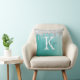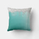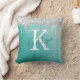Travesseiro decorativo de tartaruga-aqua com fundo metálico escovado e borda de gotejamento com brilho prateado personalizado com um monograma inicial e manuscrito em teal. Um presente ideal para aquele que gosta de um pouco de brilho ou que decora uma sala num estilo legal de tendências. Entre em contato com o designer por meio do Zazzle Chat ou makeitaboutyoustore@gmail.com se você quiser que este design seja modificado, em outro produto ou quiser coordenar itens.