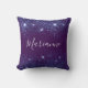 Uma cor de fundo roxa profunda com poeira brilhante azul. Personalize e adicione um nome. O nome é escrito em branco com um grande script de estilo escrito à mão.