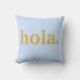 Diga oi em espanhol com este Dourado roteiro Hola sobre Travesseiro decorativo Decorativo de Cor Azul-Bebê.