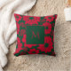 Travesseiro floral verde de cor d'água vermelha com detalhes elegantes de roteiro com flores bonitas de tendências e um toque de vintage, perfeito para feriado, primavera, outono, ou decoração caseira de inverno.