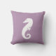 parte do oceano com o tema decor SEAHORSE WHITE em travesseiro PURPLE de um lado e PURPLE e tira branca de trás.