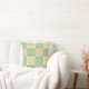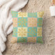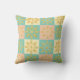 A seamless pattern with geometric floral motifs in yellow, pink, and teal on pastel squares, creating a vintage, harmonious, and cheerful design.