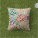 Adicione este travesseiro decorativo decorativo ao seu pátio, jardim ou decoração de casa de praia. Ele apresenta uma impressão de um mosaico original inspirado na praia feito de vidro, seixos e conchas. Mosaico original © Michele Davies