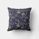 Este travesseiro decorativo temático da casa de praia costeira apresenta uma concha oceânica e um padrão de estrelas-do-mar em ouro elegante em azul marinho. O design de arte dos mares de verão faz disso o na moda perfeito para dentro ou para fora da sua decoração sazonal.
