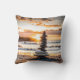 Cairn de pedra na praia com o sol e ondas oceânicas.