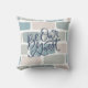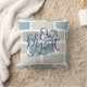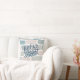 Perfeito para qualquer quarto de hóspedes, este travesseiro tem um padrão azul, verde e creme de tijolos no fundo com "Seja nosso convidado" em um roteiro escrito à mão.