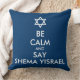 Uma paródia do popular tema "BE CALM AND CARREGAR ON". Uma Estrela de David (Magen David) substitui a coroa familiar acompanhada por texto lendo "BE CALM AND SAY SHEMA YISRAEL", referindo-se à oração de Shema que começa, "Shema Yisrael Adonai eloheinu Adonai ehad (Ouvir O Israel, o Senhor é nosso Deus, o Senhor é Um). Esta é a declaração do judaísmo e a afirmação da crença em um Deus.