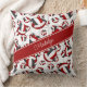 Esta equipe de vôlei de vôlei colorido travesseiro decorativo apresenta um padrão variado de volicola vermelha, preta e branca virada de qualquer forma sobre um gráfico detalhado da rede de vôlei - os painéis vermelho e preto das bolas de volleyball são misturados com um padrão floral feminino artístico - personalizam seu nome em uma fonte sofisticada, manchada, largura do cheio, faixa vermelha - fundo branco e faixa vermelha - por katz_d_zynes