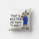 Atitude humorística de aniversário T-shirts, botões, canecas, ímanes, chaveiros, cartões, autocolantes e outros roupas de aniversário que incluem Gus com um chapéu de aniversário vestido com o seu roupão e pantufas dizendo "É um peido velho MISTER para ti!".