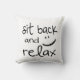 Um travesseiro decorativo simples e doce que leia simplesmente, "senta-se para trás & relaxa-se".