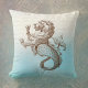 Esta design inclui um Mer-Lion (Sereia encontra o leão), em tons sépia, parte de uma coleção de lendas marítimas antiquada, contra um padrão de gradiente azul e branco do céu com letra esmaecida no fundo. Esta design é perfeita para uma casa de praia, uma sala de verão ou na Flórida, um dormitório ou qualquer casa com decor náutico. Este travesseiro se mistura e combina com uma coleção antiga de marítimos em cores semelhantes e complementares. Além de ser objeto de várias lendas, o Mer-Lion é a mascote oficial de Cingapura, representada como uma criatura mítica com a cabeça de leão e o corpo de um peixe.