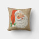Rústico e bonito, este travesseiro decorativo do Natal tem uma imagem do vintage de Papai Noel em um fundo de serapilheira do falso.