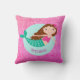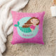 Este travesseiro personalizado de sereia apresenta um design de sereia fofo com fundo brilhante rosa falso. Personalize-o com um nome.