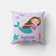 Este travesseiro apresenta uma sereia fofa debaixo do design. Personalize-o com um nome.